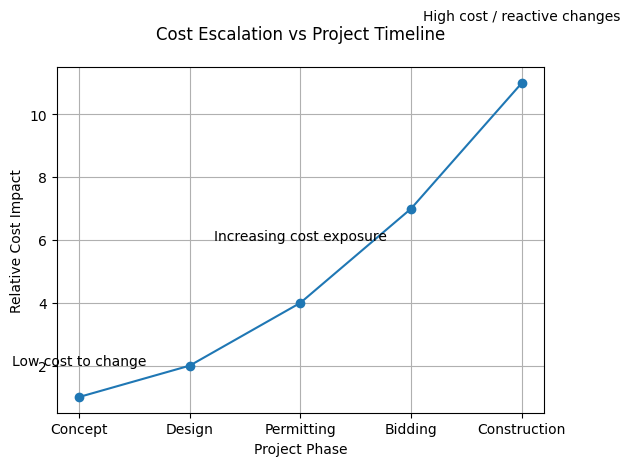 More often, cost escalation begins earlier—before construction starts—when key elements of the project are not fully defined or understood.